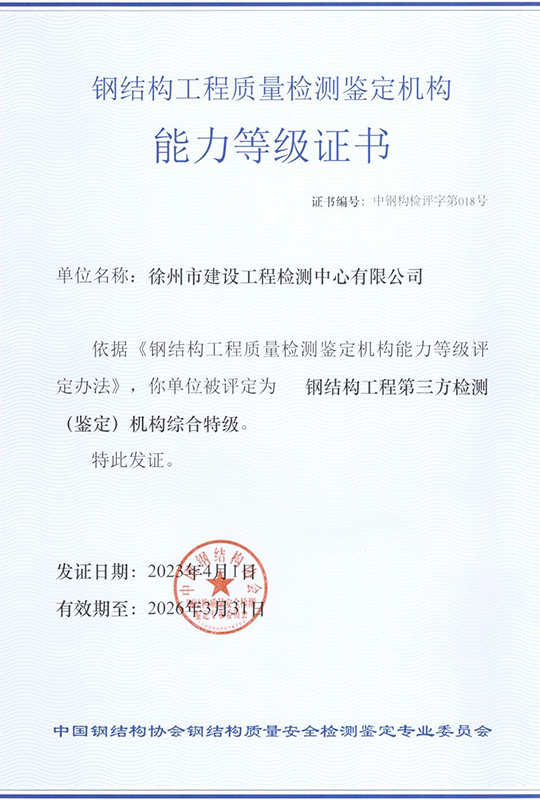 徐州市建設(shè)工程檢測中心有限公司(以下簡稱徐建檢測公司)是徐州市產(chǎn)城發(fā)展集團有限公司(以下簡稱產(chǎn)城集團)的全資子公司。徐建檢測公司前身為徐州市建設(shè)工程檢測中心,2018年事轉(zhuǎn)企改制,2020年4月,完成轉(zhuǎn)企改制資產(chǎn)劃轉(zhuǎn)工作。 徐建檢測公司是集檢測、檢驗、鑒定、咨詢等技術(shù)服務為一體、具有獨立法人資質(zhì)的綜合性第三方服務機構(gòu)。公司主要從事建設(shè)工程領(lǐng)域相關(guān)工程質(zhì)量檢測及技術(shù)咨詢服務,業(yè)務覆蓋地基基礎(chǔ)、建筑材料、建筑結(jié)構(gòu)、鋼結(jié)構(gòu)工程、市政工程、綠色建筑節(jié)能工程、建筑安全與施工設(shè)備、建筑防水、建筑水電、裝飾裝修、建筑物防雷、室內(nèi)環(huán)境、房屋安全鑒定、城市軌道交通工程等專業(yè)領(lǐng)域。......